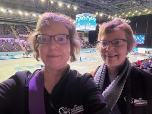 We both no longer work and so have started volunteering. The photo is of us at the recently held European Figure Skating Championships held in Sheffield in January which was our first volunteering role.